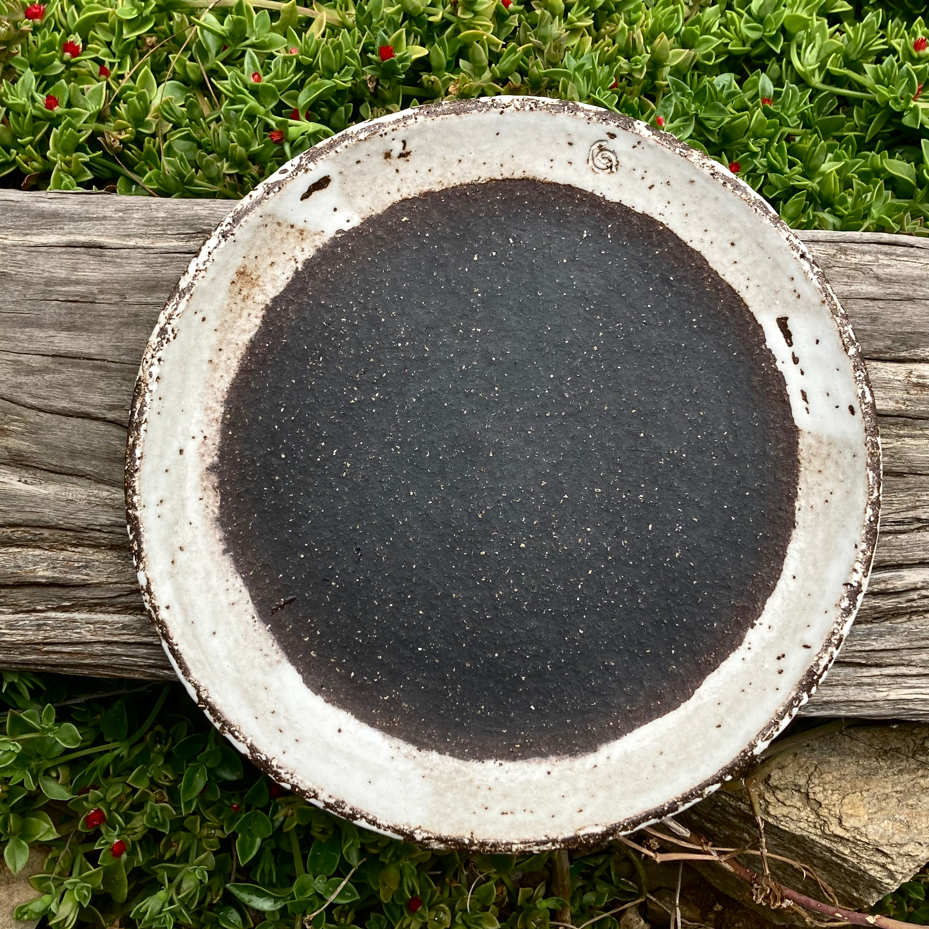 Arcilla negra con arena de Casablanca y esmalte blanco satinado, horneado a 1240°.